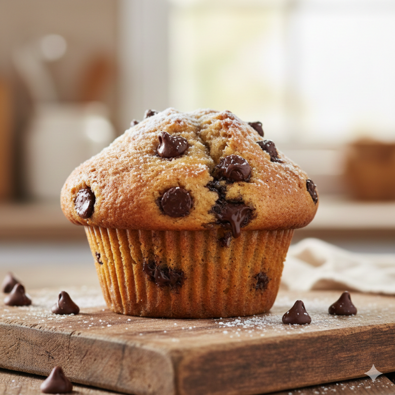 Ecco una ricetta classica per dei muffin alti, soffici e carichi di gocce di cioccolato. Il segreto per la consistenza perfetta? Non mescolare troppo l'impasto!